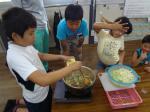 1・2年生は米とぎ。今日は7~8合しかとぎませんでしたが、本番では大人の分も作るので、30合くらいのお米をとぎます。