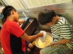 卵を白身と黄身に分けるのも躊躇するSo君。Si君はなかなか上手でした。