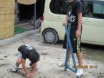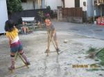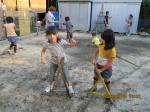 今日は雨あがりの水たまりが残る庭でヤットコや一輪車、コマの練習をする子ども達がいっぱい!