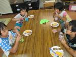 今日は暑かったので、おやつはこの夏最後の?かき氷とお菓子でした~!!