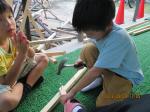 今日は新しく作ったヤットコで庭でヤットコサッカーを楽しんでいました。