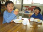 焼きあがったパンを食べた子ども達は「うまい!!」「おいし~い!!」