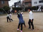 お正月明けの子ども達は久しぶりにみんなで遊べるので庭でコマ遊びをしたり、なわとびをしたり、公園では激しいおしだしを力いっぱいたたかっていました。