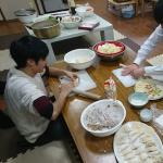 学童時代に作った餃子の皮を綿棒で丸く伸ばして手作りの水餃子を作りました。