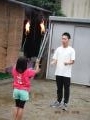 5・6年生が火つけ練習をしている間も3・4年生が頑張って1・2年生を指導してキャンプファイヤーの踊りの練習をしていました。