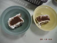 おやつは頂き物のカステラの端切れを使って「ティラミス」を作りました。