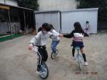 公園まで行けない時は庭でもどろけいをやったり、一輪車でメリーゴーランドをやったり。