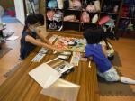 新しい場所に張り切ってやってきた子ども達はテンションが高くて、なかなか座ることもできず、跳ぶは、走るは、うろうろ歩き回るは・・・。
