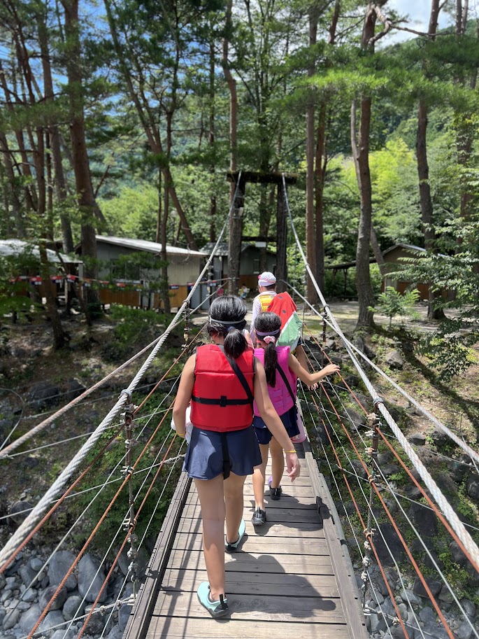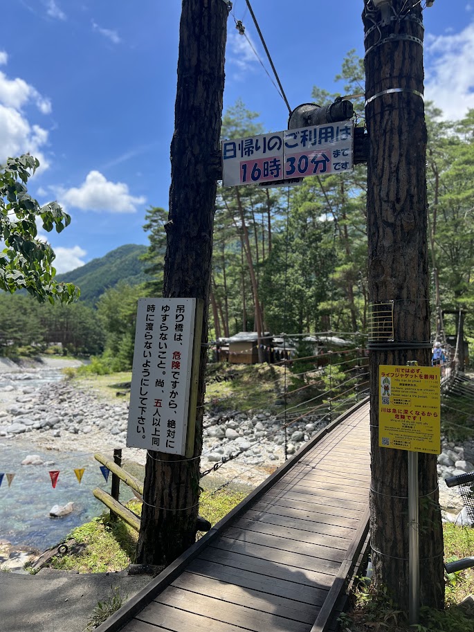 川に行くまでにつり橋を渡るのが少しスリリングでした☆