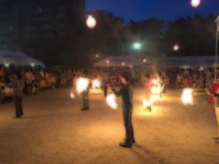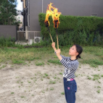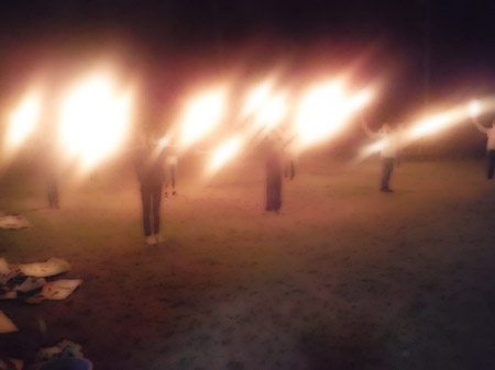 キャンプ後半は、5・6年生による『トーチトワリング』を披露、子ども達の憧れです。