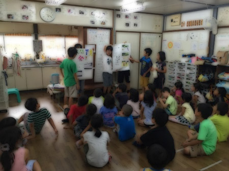 熱中症も心配されるこの時期、低学年は午後お昼寝、高学年は1番暑い時間体は室内休憩しながら、暑い夏を健康に過ごせるよう配慮しています。