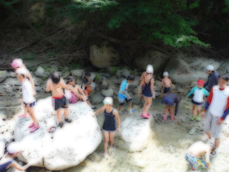 例年『野田平キャンプ場(長野県下伊那郡)※変わることがあります』近くの澄んだ川で泳いだり『マスづかみ』体験を行います。
