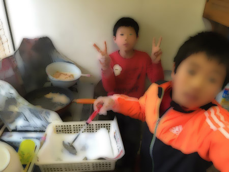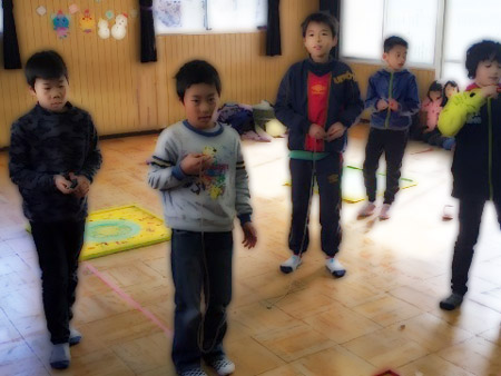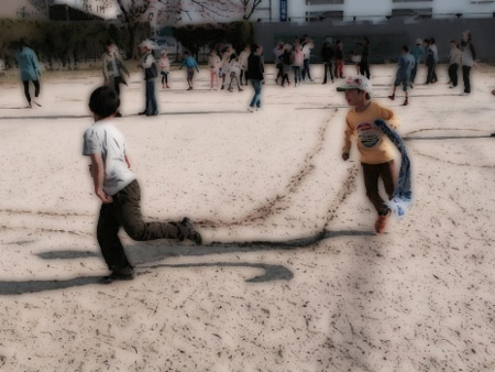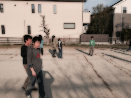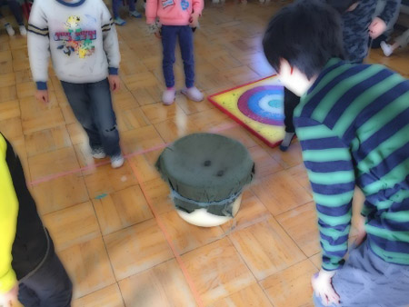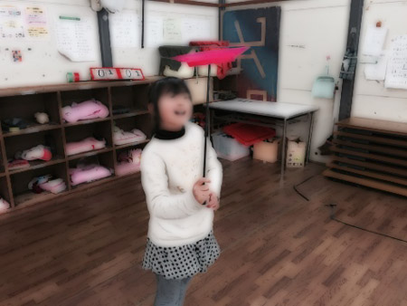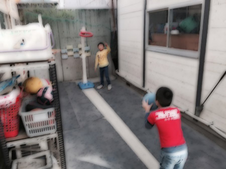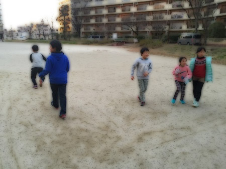 寒くても公園に遊びに行ったり、庭ではヤットコ、コマ、なわとび、1輪車などで元気に遊んでいます。