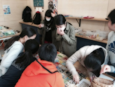 バレンタインのチョコ作りを男の子も女の子も楽しみます。